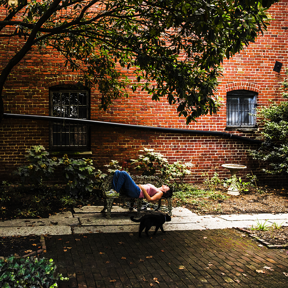 Antichambres est une série de 25 photographies réalisée in situ dans des lieux publics et symboliques où mon corps apparaît allongé dans l’image, cette position reflétant une invitation à stopper le monde dans sa course effrénée et entropique pour en revenir à l’essentiel : le sens de notre existence puisque « l’homme est la mesure de toute chose : de celles qui sont, du fait qu’elles sont ; de celles qui ne sont pas, du fait qu’elles ne sont pas » (Protagoras). L’antichambre, dans cette série, est donc l’allégorie même d’un espace ouvert aux frontières indistinctes, un lieu intemporel où la situation spatiale est propre à l’introspection de soi et à la réflexion au cœur de notre société en mutation.