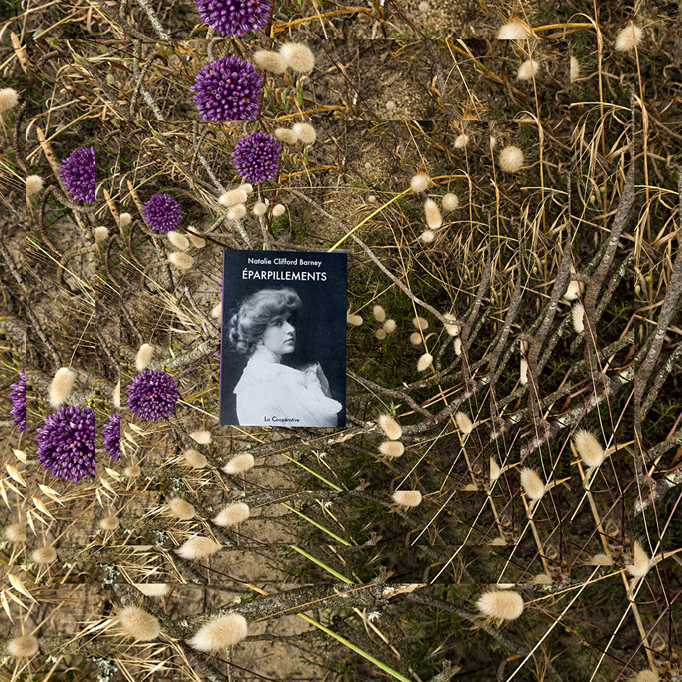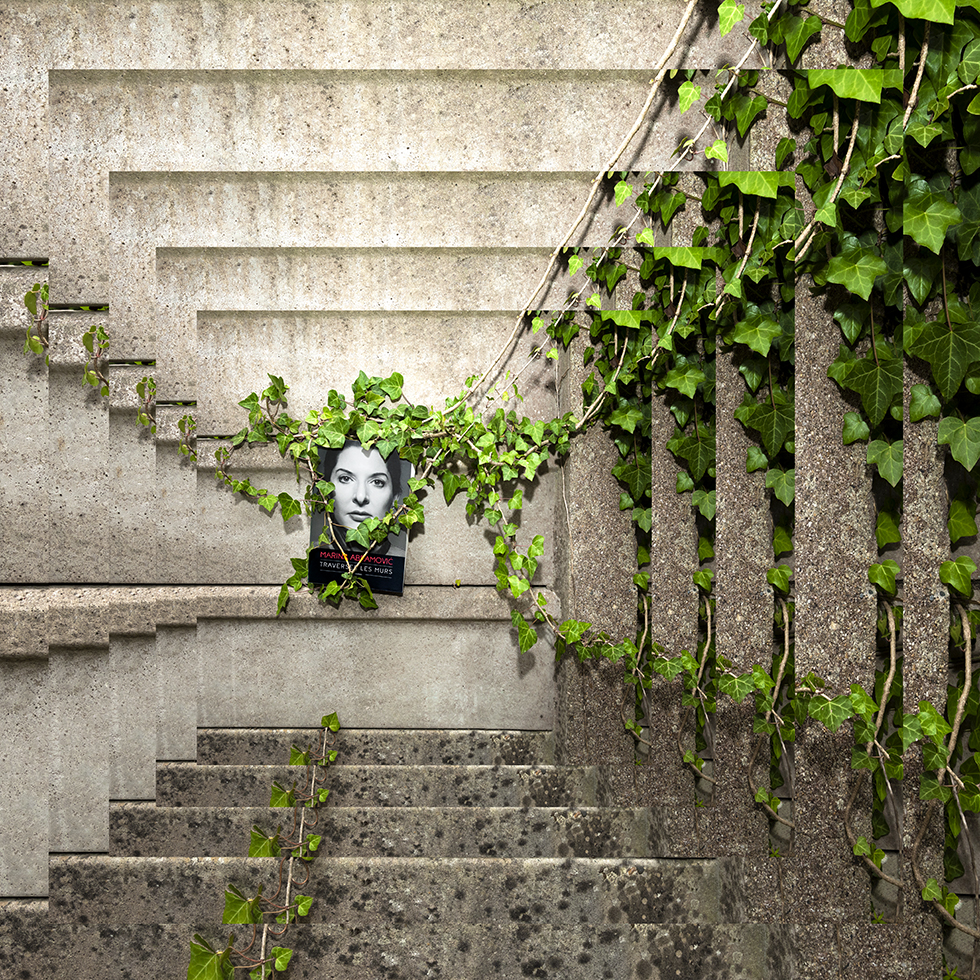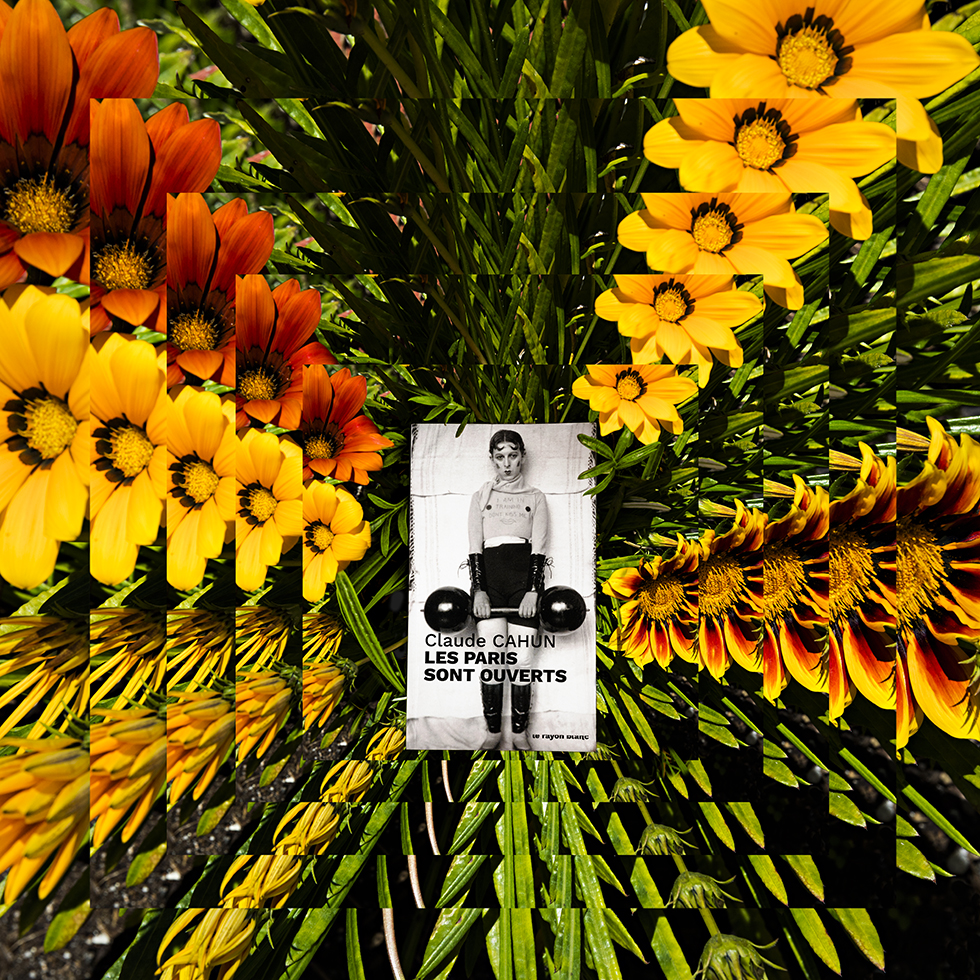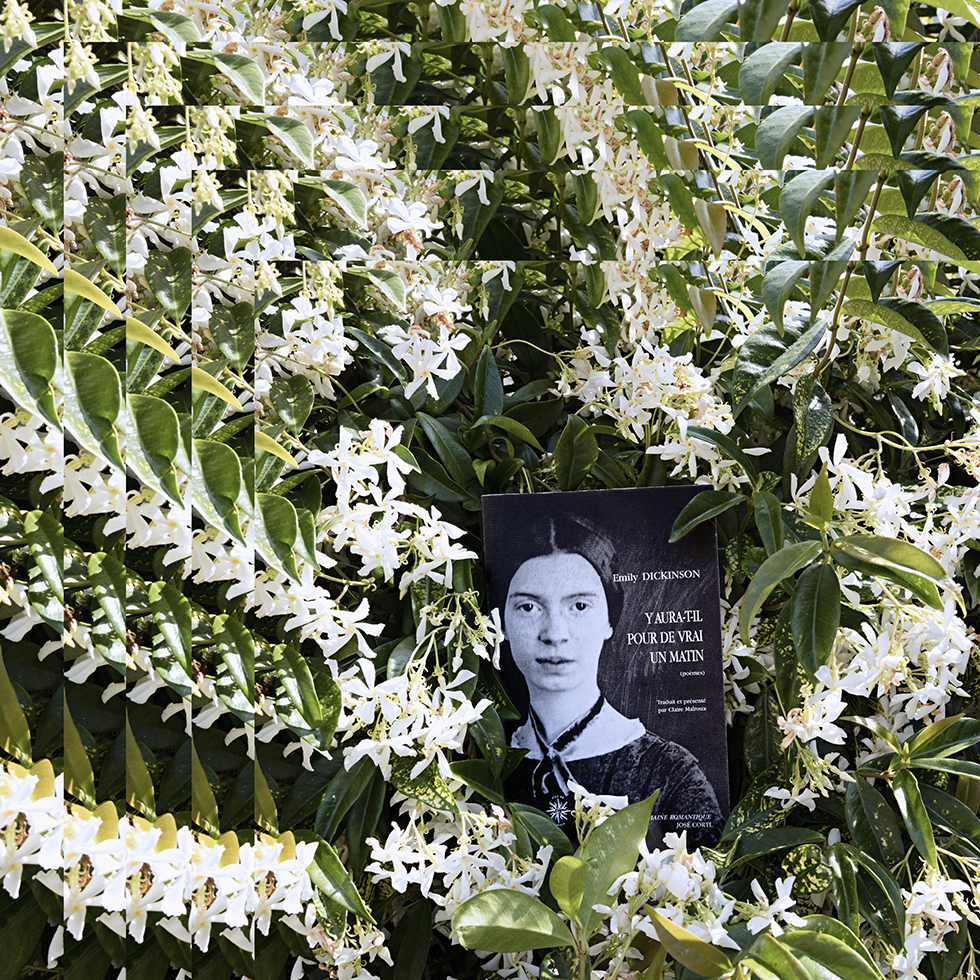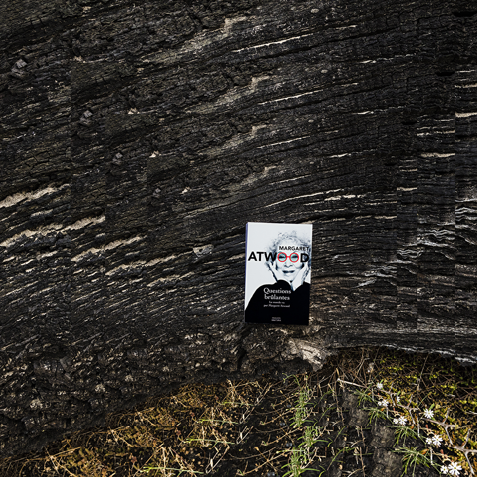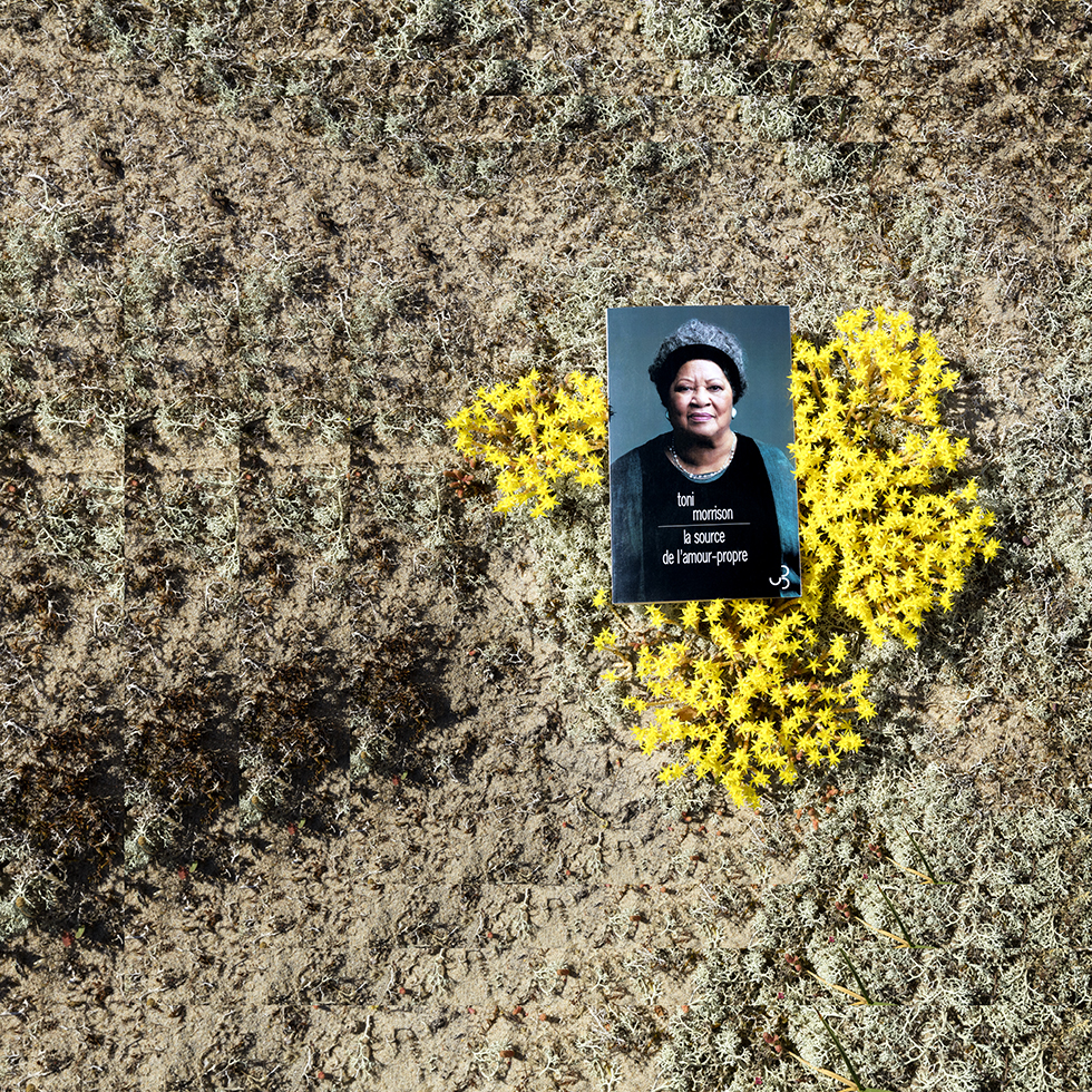 C’est de cette prise de conscience qu’est née la série Hineni – mot hébreu signifiant « Me voici ! ». Cette série se veut un geste d’insoumission face à l’invisibilité persistante faite aux femmes dans la sphère publique. Le titre porte leur combat, leur puissance créatrice et leur capacité à proposer une vision du monde singulière à travers leurs propres écrits. Mon travail a alors été de circonscrire vingt-trois créatrices pionnières et engagées – souvent au péril de leur vie – au cours du dernier siècle : essayistes, philosophes, poétesse ou artistes. Pour chacune, j’ai retenu une de leurs publications dont la couverture présente leur portrait. J’ai photographié leurs livres dans des environnements naturels en résonance avec leurs champs d’exploration et de réflexion. Puis, j’ai inscrit chaque photographie dans un montage de figures fractales, afin de démultiplier la portée de ces œuvres et d’affirmer que la pensée de ces femmes persiste, se transmet, prolifère, sans jamais céder.