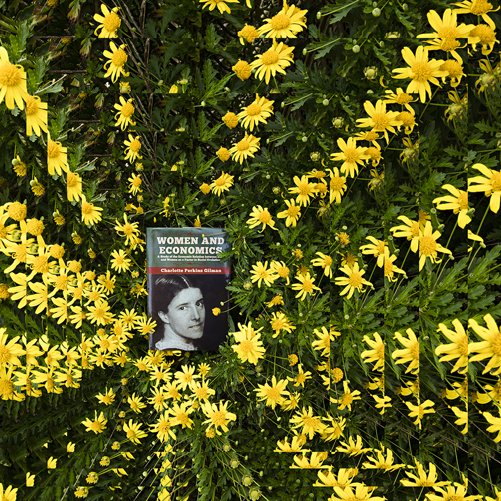 Afin de réaliser précédemment la série Way Out consacrée à la société de consommation, j’avais rassemblé vingt-trois livres explorant les champs social, philosophique, sociologique et littéraire. Avec le recul, j’ai constaté qu’aucun de ces vingt-trois ouvrages n’était écrit par une femme. Cette absence m’a troublée, voire choquée. Elle réactivait ce que l’Histoire des idées orchestre depuis des siècles : l’effacement méthodique de l’autorité intellectuelle des femmes. Il m’a fallu reconnaître ma part d’aveuglement. Elle réactivait cette question qui me taraudait depuis un certain temps, mais sans savoir comment faire image-critique à propos des droits des femmes comme le proclamait La Déclaration universelle des droits de l’homme en 1948.