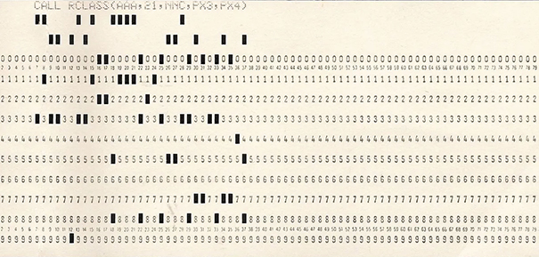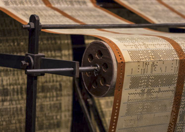 c) Dimension fictionnelle : présenter l’analyse du poème de Goethe comme le produit d’un algorithme qui fait tourner un ordinateur IBM. Je découvre que le terme « ordinateur » apparaît en France en 1955, sur le modèle d’ « ordonnateur », qui servait à désigner, me dit une encyclopédie en ligne, « un organe spécial et variable […] constitué simplement par des feuilles de carton ajourées, analogues à celle des métiers Jacquard », ceux-là mêmes qui permettaient le tissage de textiles. L’invite, au début de La Machine, est : « ici érato, pour programmer directement votre question, veuillez insérer la carte perforée dans la fente de lecture et appuyer sur les touches a et d ». La Machine perecquienne est évidemment une machine à tisser le texte (le textus latin : tissu, trame), et de l’aveu même de l’écrivain, « les fils rompus de l’enfance ».