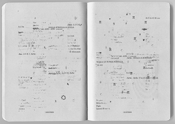 Au cœur de La Machine, de la poésie opérant sous nos yeux, où le poème de Goethe est pré-texte et nouveau texte, au détour de l’un des innombrables chemins qui le composent, soudain, des culs-de-sac : impossible d’aller plus loin. Voyez vous-même les trois extraits suivants : « sa / se / si / so / su / sur / surveiller et punir », « lam / lan / lao / lap / la patrie, la famille, le travail », « ha / ha / haï / haï / heil hi ! ». Ce qui émerge dans l’application du protocole 1 :