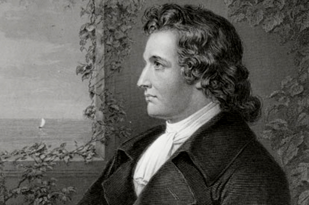 Perec choisit un poème de Goethe, Le Chant du promeneur, pour sa brièveté et pour sa renommée – c’est peut-être le poème le plus connu en Allemagne – poème qu’il soumet à la Machine, un ordinateur IBM dernier cri en 67. C’est peu dire que Perec va respecter le cahier des charges proposé par Eugen Helmlé : la lecture de La Machine soulève pour le lecteur le capot de l’ordinateur, autant qu’il donne à voir les processus créatifs : on voit agir à plein la fonction poétique (que le linguiste Jakobson définit comme « la visée […] du message en tant que tel, l’accent mis sur le message pour son propre compte »). Voici le poème de Goethe dans sa traduction en français par Valentin Decoppet, suivie en allemand telle qu’elle apparaît dans La Machine :