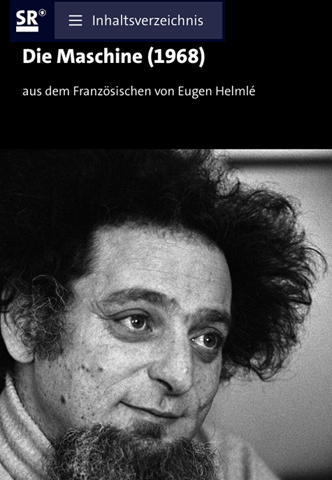 Que le texte de La Machine soit destiné à la radio souligne d’autant plus la butée muette de l’écriture et de la voix, que les espaces blanches du papier et les silences des locuteurs rendent sensibles et intelligibles. On écoutera, on ne pourra faire autrement que d’écouter Die Maschine sur le site de la radio sarroise quand bien même on ne comprendrait pas l’allemand : on suit avec le texte français sous les yeux ; on saisira alors la profondeur du travail de Perec et de Helmlé – comme une œuvre théâtrale ne se révèle complètement qu’une fois incarnée par les comédiens, la pièce radiophonique nous fait mesurer l’inventivité vertigineuse de Perec, sa fantaisie, sa drôlerie – ce que la seule lecture du texte traduit en français ne me permet pas de saisir aussi bien. Les quatre voix allemandes sont celles des comédiens Olaf Quaiser, Heiner Schmidt, Alwin Michael Rueffer et de la comédienne Dagmar Altrichter. Ce Hörspiel est une petit merveille.