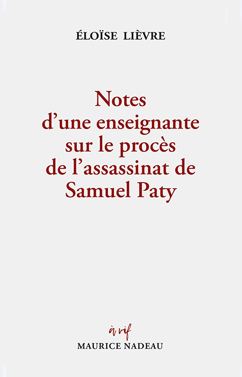 Notes d’une enseignante sur le procès de l’assassinat de Samuel Paty (Maurice Nadeau, 2026) contient en ces premières pages la justification de s’intéresser à ça, le procès des hommes et une femme, soupçonnés, accusés d’être impliqués dans le meurtre et la décapitation d’un professeur de l’école de la République.