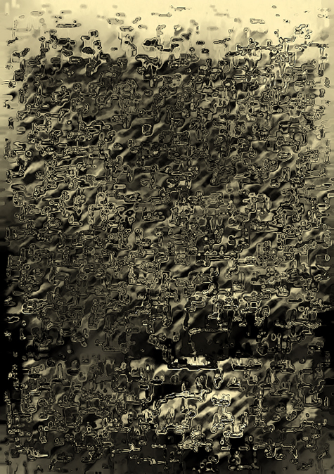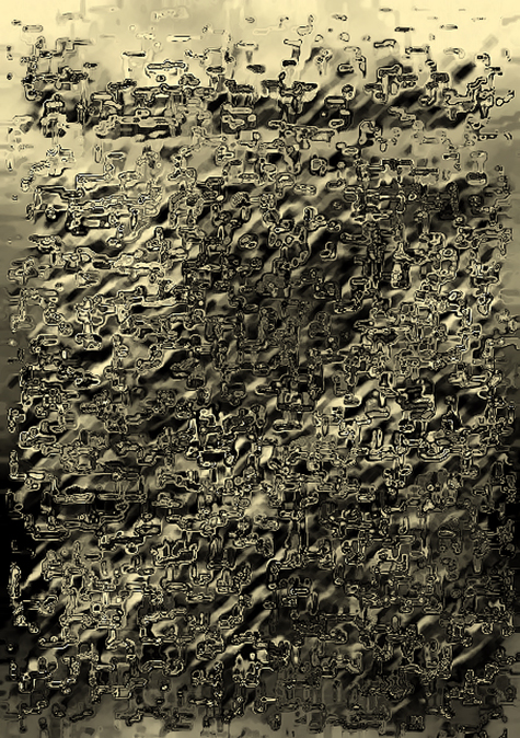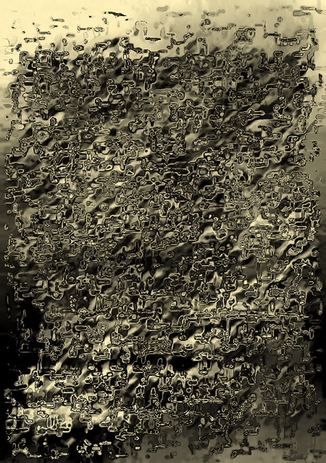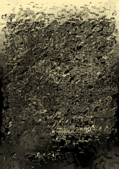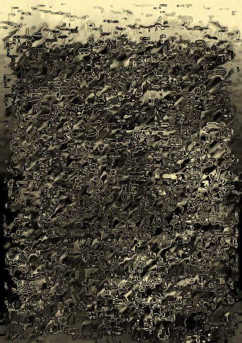 Une traduction en V.U. (= Version Universelle et/ou Visuels Universels) est une dérive numérique engagée à partir d’un texte littéraire donné. Chaque page dudit texte est traitée comme une image, autrement dit d’un point de vue volontairement désinvolte au regard de la sémantique et de la narratologie. Cette traduction s’effectue selon un protocole dédié soigneusement élaboré en amont, chaque texte induisant un protocole spécifique. On ne saurait, en effet, traduire avec les mêmes clefs des auteurs aussi différents que Joyce, Ponge ou Gombrowicz ; de subtils distinguos sont nécessaires (tons, rythmes, nuances etc.). Voilà pour l’essentiel en quoi consiste ce travail de traducteur. Le dispositif mis en œuvre produit bel et bien une autre version du texte souche. Que cette nouvelle version semble illisible, ou à tout le moins assez difficile à déchiffrer, est une question purement académique. Il y a énigme là-dedans, bien sûr. D’une page à l’autre, cela ne s’éclaircit pas — ni ne s’obscurcit. La traduction flotte. Et tout le reste est poésie visuelle.
